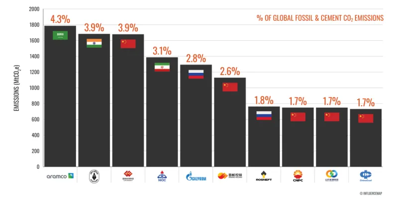 Helft van alle uitstoot door slechts 32 fossiele bedrijven
